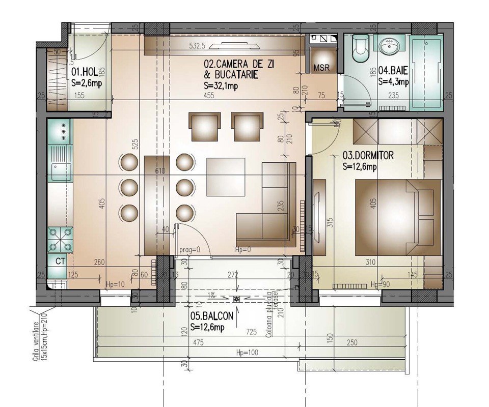 | Suprafata balcon 12,6 |